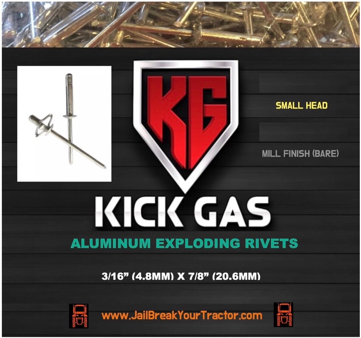 | 100X Aluminum Exploding Small Head Mill Rivets Pop Rivets 3/16" Fastener Tri-Fold After installation, our Smooth Break technology™ leaves the rivet flush so it won't collect dirt, snag rags, or cut fingers or tires.   These exploding rivets are made from high-quality aluminum.  Rivet hole size: 3/16" (4.8MM).  Length of rivet: 7/8"  (20.6MM) Engineered to grip materials ranging from 1/8"-3/8".. which is a wider grip range than many of our competitors!  fast shipping... |