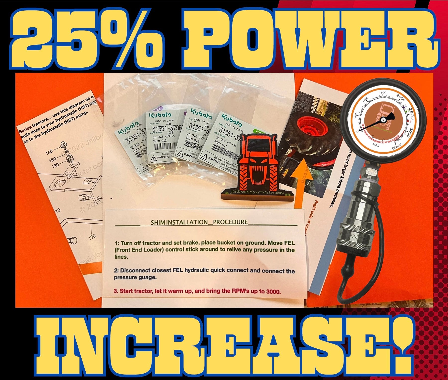 Deluxe KUBOTA L and MX Series 25% Pressure Increase kit W/ 3500 P.S.I Gauge 4 Hydraulic Shims